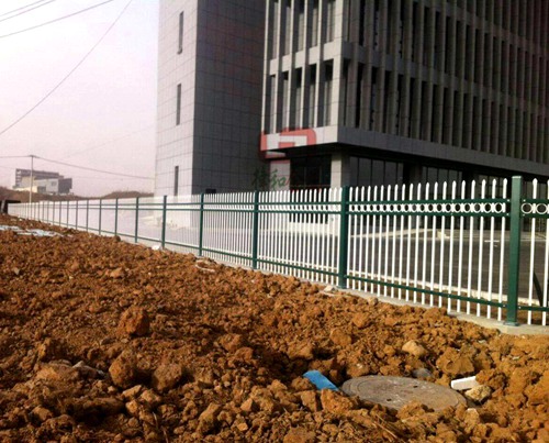 綠白色帶裝飾圓環鋅鋼圍墻圍欄